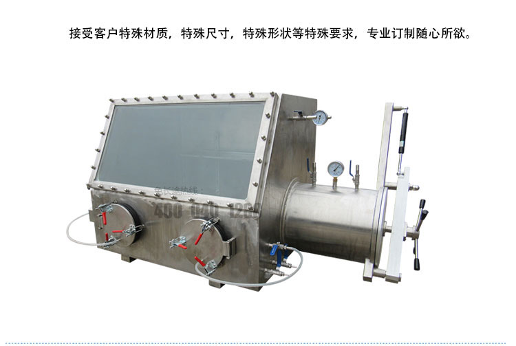 真空手套箱主要由主箱體和底座組成,如用戶有其它特殊要求,也可以根據(jù)需要進(jìn)行設(shè)計(jì)或改造;箱體上有二到三個(gè)手套操作接口,操作箱迎面為有機(jī)玻璃,視角廣闊,操作者能夠清楚地觀察到箱體內(nèi)的操作過(guò)程,使得操作過(guò)程較直觀地展現(xiàn)在操作者的眼前。箱體上有二個(gè)真空球閥,用戶可根據(jù)需要使用。球閥的內(nèi)外安裝接水嘴,在需要通水或通氣的情況下可由此接入。箱體內(nèi)裝了照明燈泡和多孔插座。