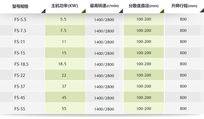 四、液壓單軸分散機技術參數