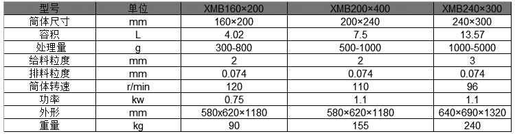 三、實(shí)驗(yàn)室用棒磨機(jī)參數(shù)