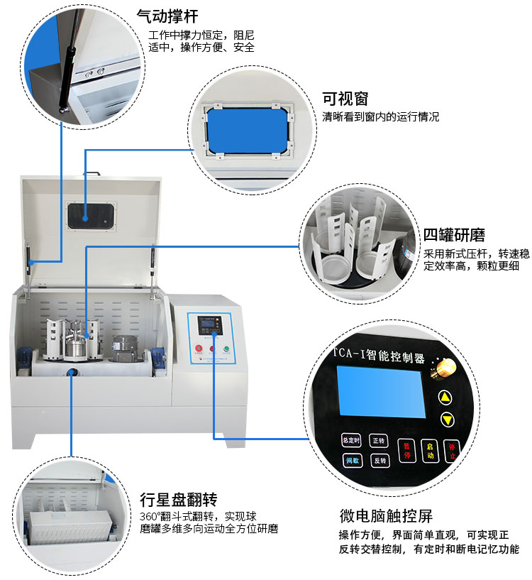 三、天創粉末微電腦行星球磨機特點: